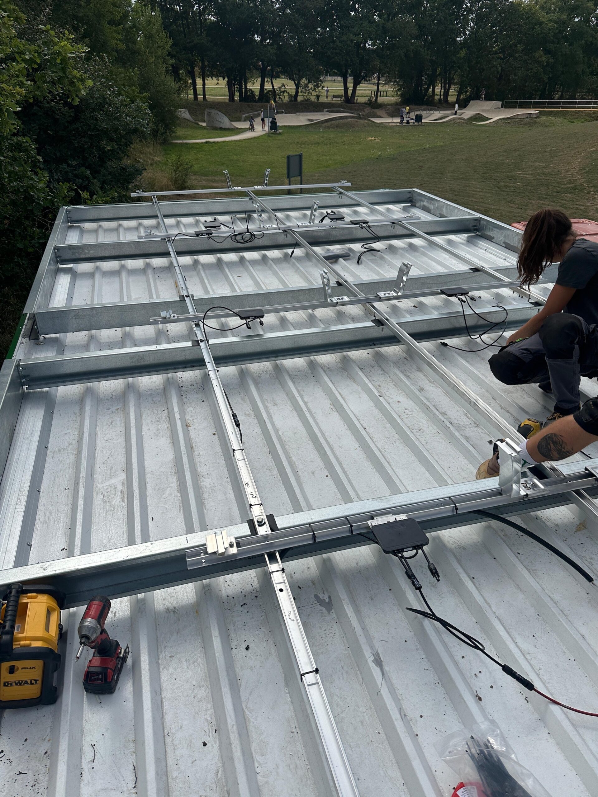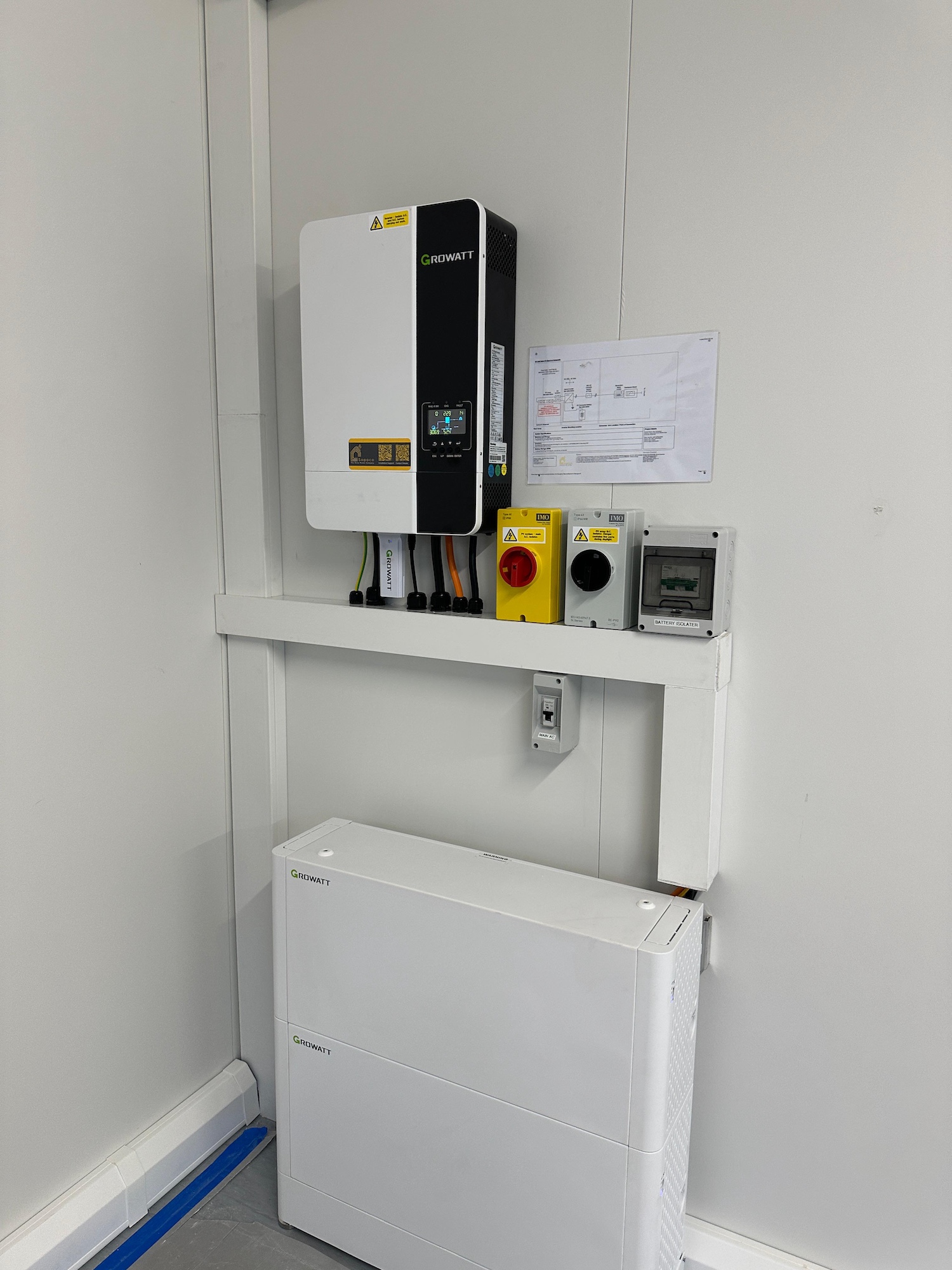 One of our trusted partners, an electrical subcontractor, had been asked by Portakabin to provide an off-grid solution for Fleet & Crookham Athletics Club to charge their mobile floodlights and batteries. This project required us to deliver a system that would generate the required electricity on the roof of a small cabin.