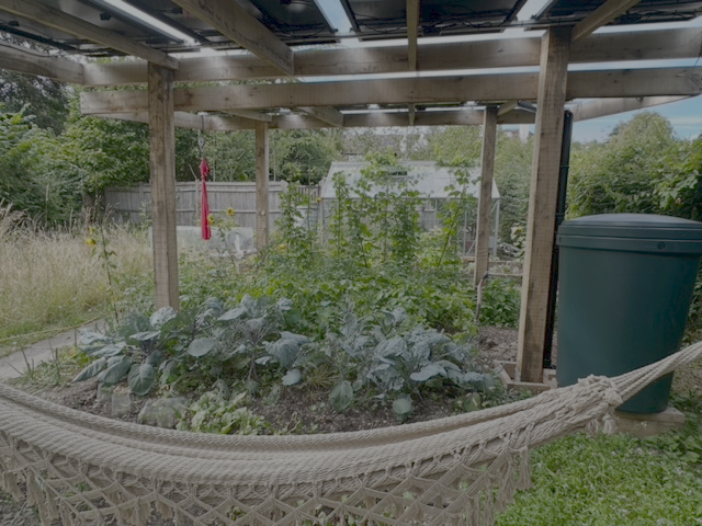 As the pergola is positioned over a vegetable patch, we gave careful consideration to light levels and shading. The bifacial panels allow UV to pass through and were spaced to maintain a comfortable amount of brightness beneath. In summer, the shade can help prevent crops from overheating, often improving growth and yield.